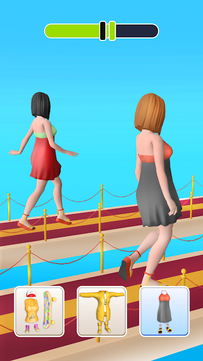 Dress up the cute girl in Fashion Girls Beauty Race 3D! with your own designs and beat your opponent! Each level has a different theme, such as Christmas, Wedding, Maid, Skatepark, etc. If you want to get high scores and win levels, you need to choose clothing that is not only beautiful but also suitable for a specific theme.