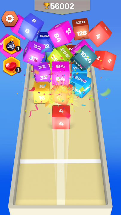 Move finger on the screen and slide to aim, shoot the 3D cube, let it have impact with the same cube, and then merge into a new 3D cube, you will find that they can jump upward on collisions! This is an interesting 3D physics experience, you will find yourself addicted to it.