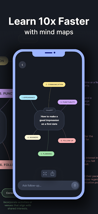 Interactive Learning Experience: Engage with your mind maps in a dynamic way. Ask follow-up questions, explore related topics, and have interactive chats with your mind maps to make your learning experience more comprehensive and enjoyable.