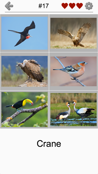 This game has pictures of 106 birds from all over the world: small European goldfinch and giant Andean condor, African grey parrot and Australian emu, even penguins from Antarctica!