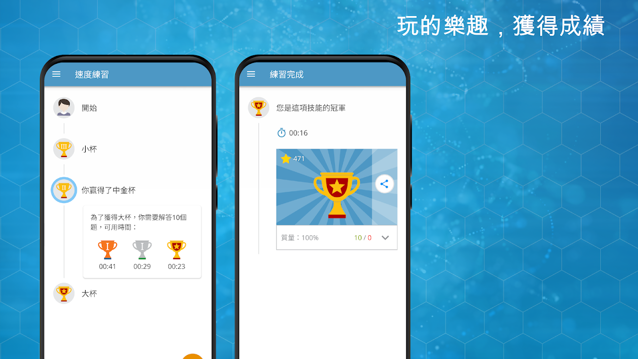 ☆ 盡可能快地完成 10 道數學練習來訓練速度,以獲得銅杯、銀杯或金杯