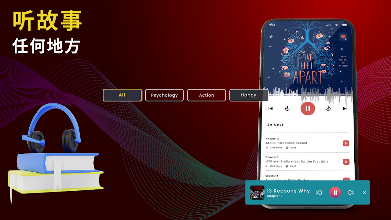 欢迎来到藏有 有声读物应用程序 - 故事 中最有趣和最浪漫的小说的多本图书图书馆。