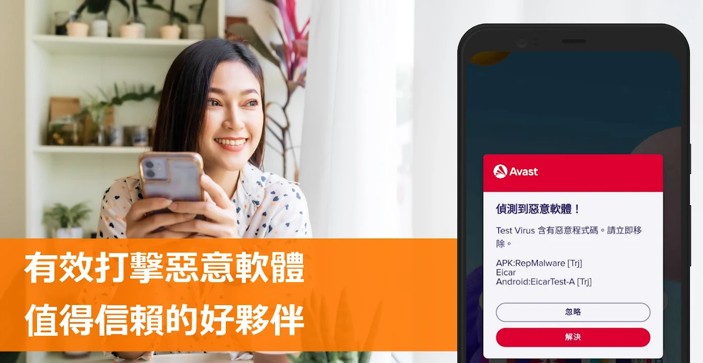 Android 版免費防毒應用程式 Avast Mobile Security,為您抵禦病毒和其他類型的惡意軟體。