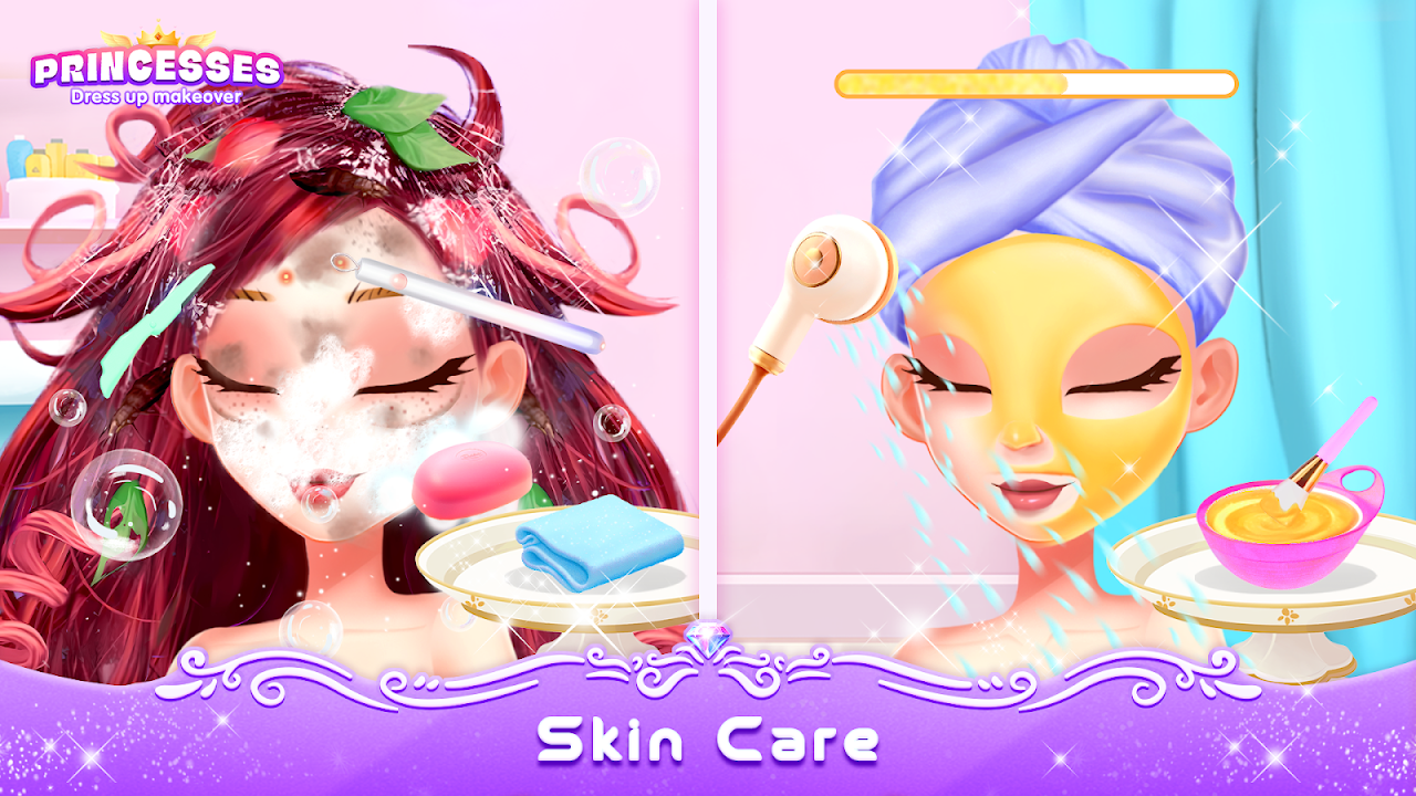 Girl game! Skincare, manicure, makeup, hairstyling, and dressing up!