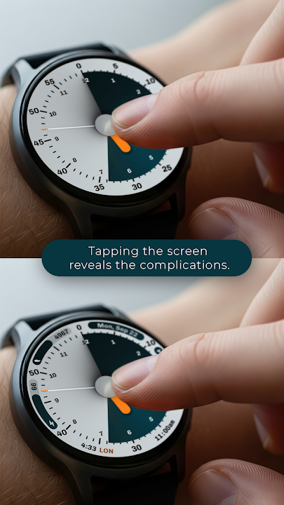 這款錶盤將精準的時間顯示、可自訂的功能和豐富的資訊顯示融為一體。其簡潔的設計初看之下顯得簡約,但只需輕觸錶盤即可立即顯示所有複雜功能,讓您一目了然地查看最重要的數據。