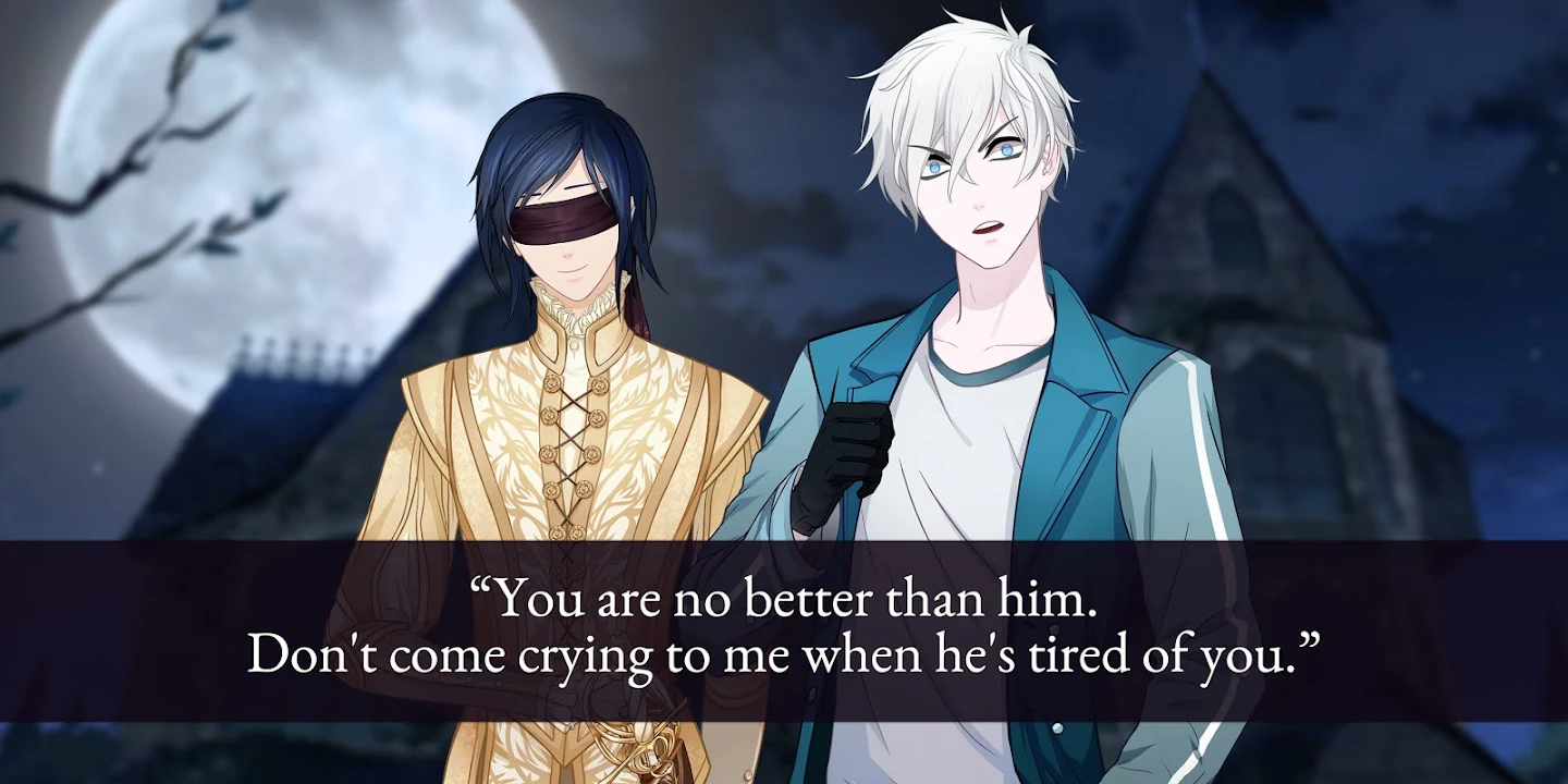 Each story is divided into chapters. In each episode, you will need to make different choices to personalize your interactive story. You can play all the choice games of the Moonlight Lovers series for free and in any order. Each character has their own love story, their own adventure and their own mysteries… Your romance can end in three different ways in this choice game: it’s up to you to uncover the mysteries of the manor and the vampires that live there!