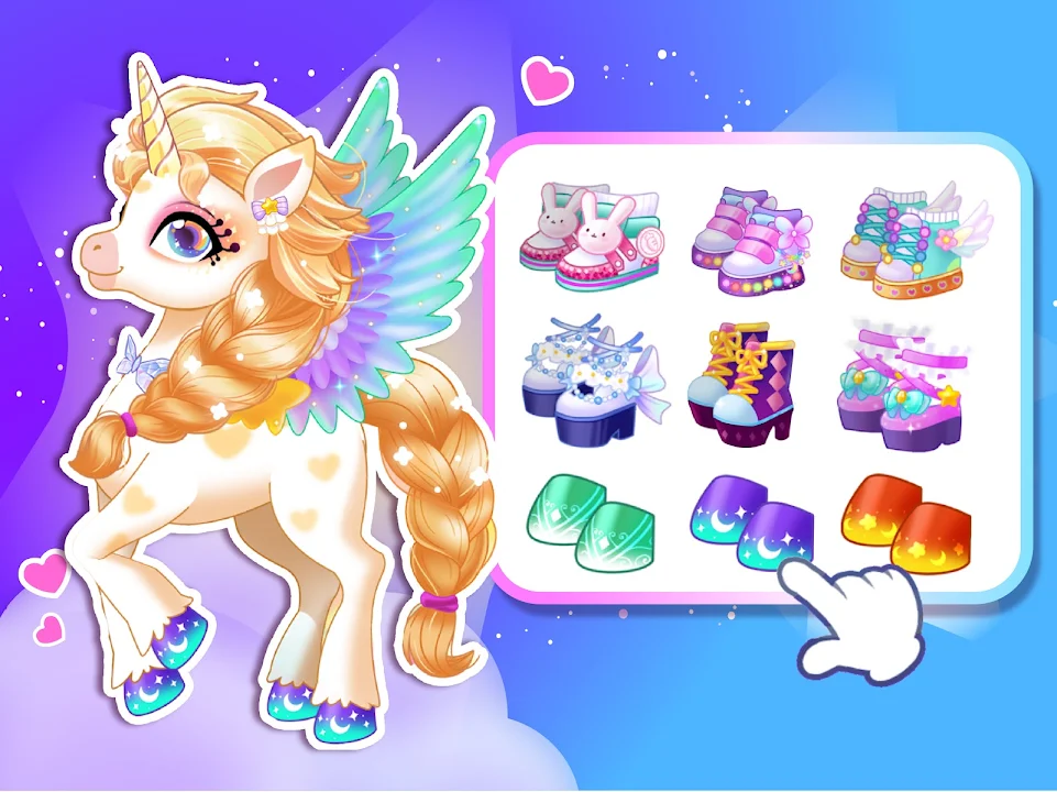 This magical world of unicorns has everything you need to dress up and get creative. Experiment with a nearly endless combination of styles, accessories, colors, gems, jewels, and so much more!