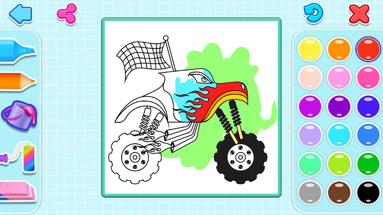 🌟 保存和分享 - 透過這款兒童汽車繪畫遊戲,他們可以創建並保存男孩著色頁的任何傑作,供孩子們分享他們的藝術作品。