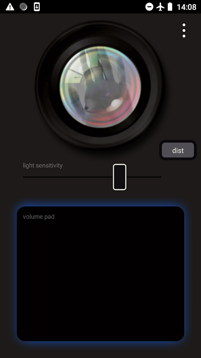 要播放,請將手機放在桌子上,然後使用滑塊調整光敏度。就像在那兒一樣,它會改變演奏的距離。上下移動傳感器上方的手。那將改變音調的頻率。