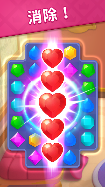 消除3個或更多的寶石來創造出爆炸性的組合,並通過關卡!翻新和裝飾傢中的房間,完成房間設計即可獲得獎勵,繼續您的神奇冒險!古老的城堡渴望迎來新生!事不宜遲,立即開始吧!
