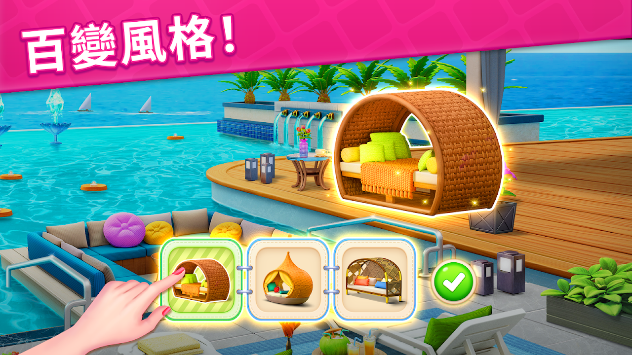 • 從游泳池、臥室和客廳開始設計你的專屬家園,並沿途解鎖更多令人眼前一亮的區域!