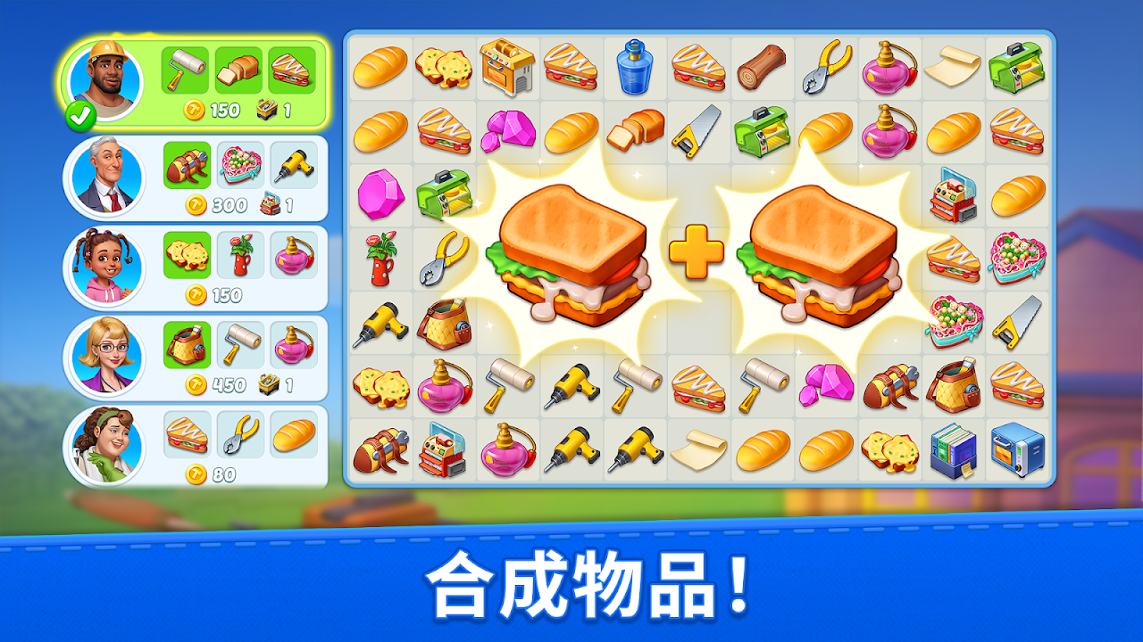 • 通過合併物品來重建整座城市,成為一位備受尊敬的家園設計大師!