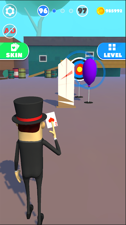 Draw a path, throw cards, avoid obstacles, smash balloons, cut fruits, and finally hit the bullseye.