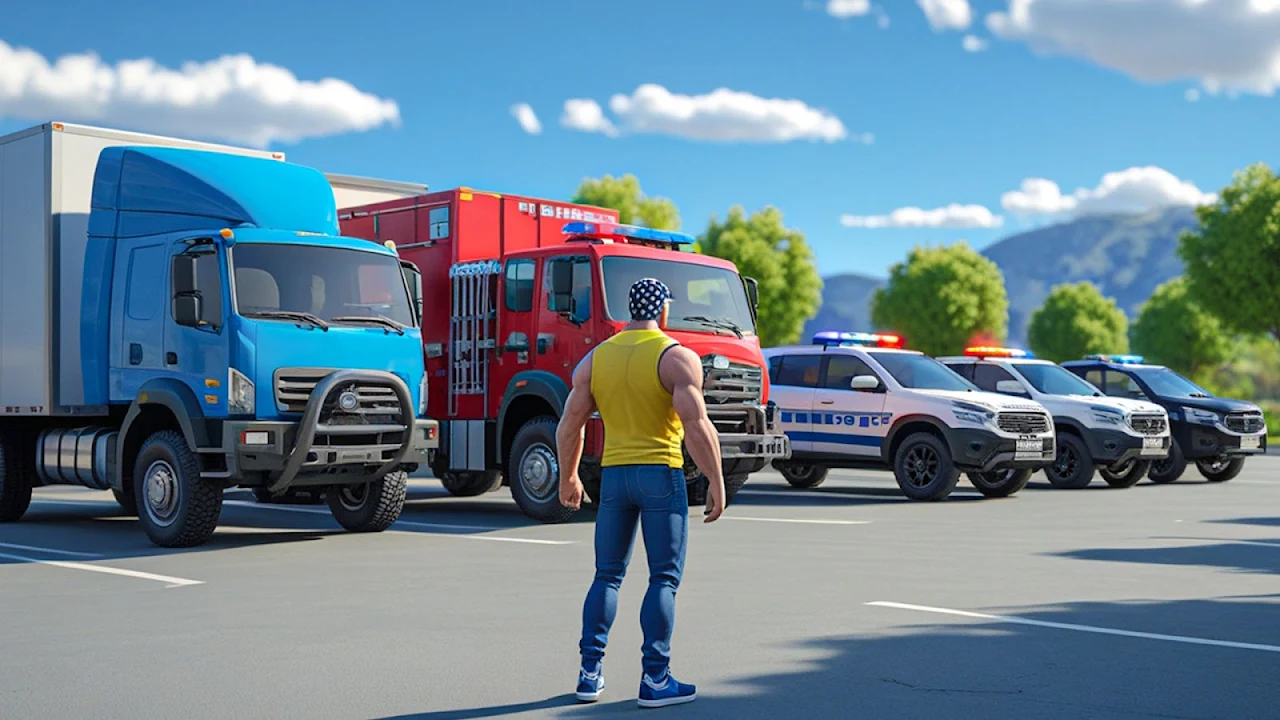 Explore a vast Open World and take control of multiple vehicles, including a fire truck, ambulance, car, truck, motorbike, and police car. Drive freely or complete exciting missions for a fun-filled driving experience.