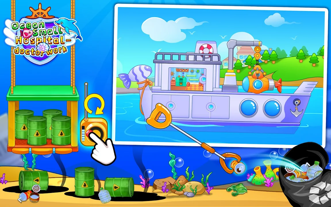 Control the submarine to ascend and descend, explore the sea, and search for fragments of treasure. Clean up the underwater garbage and the environment, Let’s provide a clean and safe living environment for small animals in the ocean.