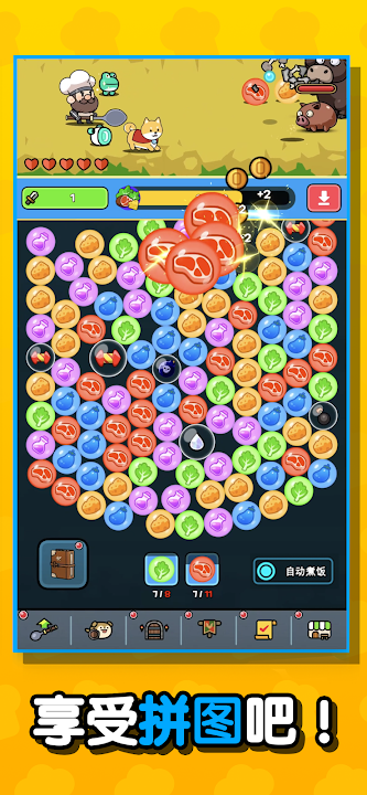 这是一款放置类解谜RPG游戏,在这里你将化身为厨师,探索地下城,收集各种食材,并通过烹饪提升自己的能力。收集能量球解开谜题,打败怪物,探索众多地下城,成长为最顶级的厨师。即使关闭游戏,你的成长也不会停止!快来体验烹饪、战斗和解谜的完美结合吧!