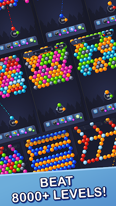 立即开始消除泡泡,挑战自我,体验这款快节奏、奖励丰厚的冒险游戏。立即下载《泡泡龙》益智游戏传奇,开启你的胜利之旅!