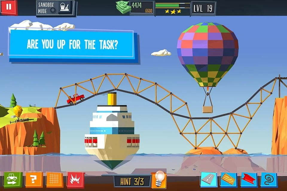 In addition to the normal mode the game features the easy mode for more relaxed gameplayed, focused on creativity and improvisation. You can also use in-game hint system if things get too hard. With 86 levels plus hidden and bonus bridges to construct you will not run out of things to do quickly.