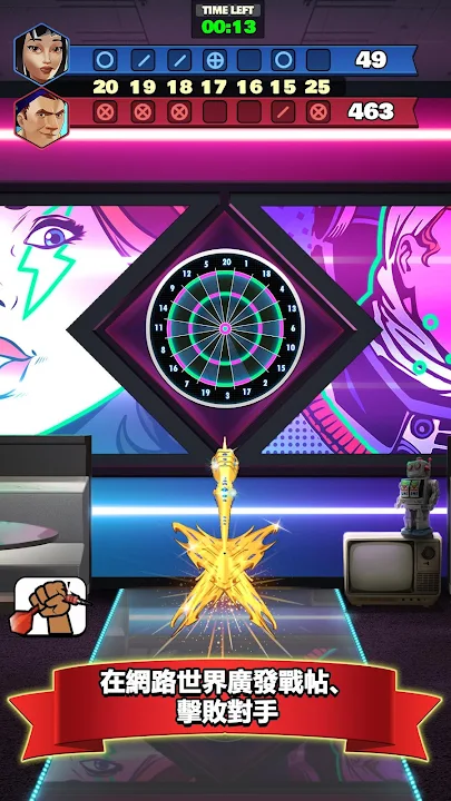 這款獨樹一幟的飛鏢遊戲精彩好玩,讓你在線上單挑其他玩家!趕快學會射飛鏢的效率心法和準確度、磨練自己的技巧,就能成為獨霸天下的飛鏢冠軍!