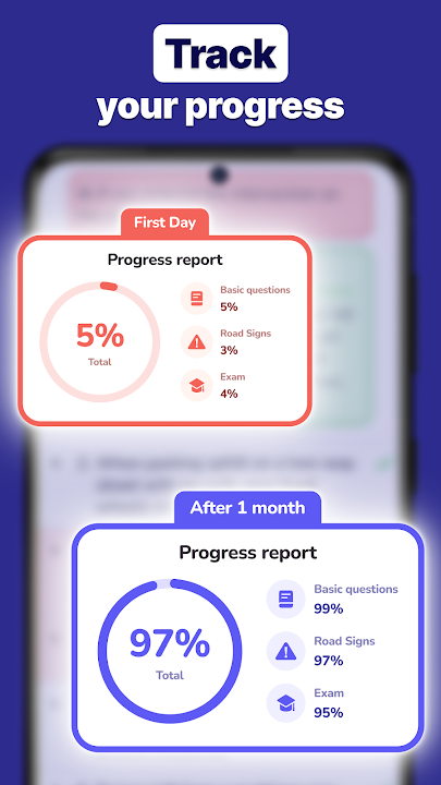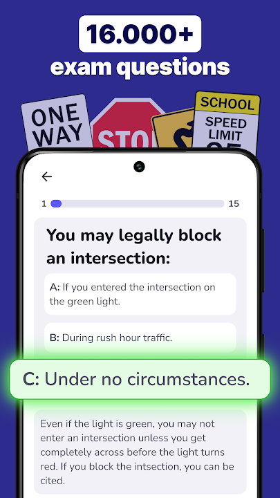我們的 DMV 練習題應用程式涵蓋駕照筆試和路考所需的所有細節。每題都附有清晰的解答,每次練習後,您都可以回顧錯題,掌握所有知識點,並自信通過筆試。