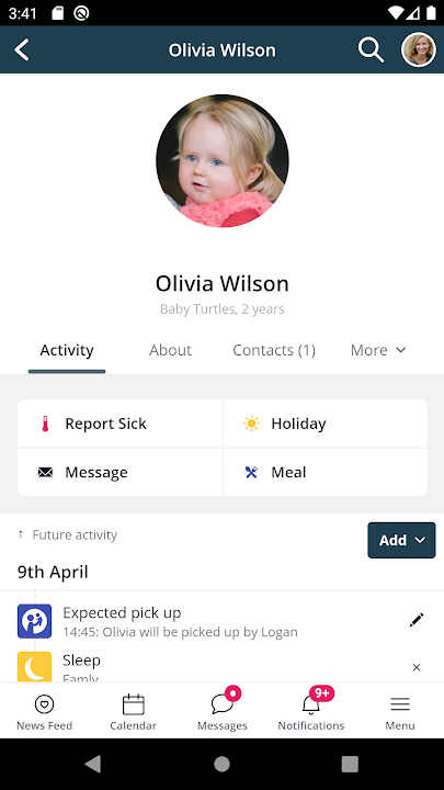 The app also features two-way communication between you and your child’s nursery, enabling a variety of functions: