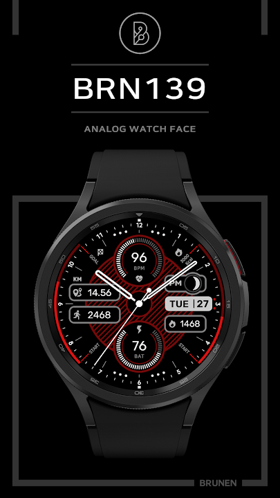 該錶盤是 BRUNEN 為 Wear OS 設計的現代數位錶盤。