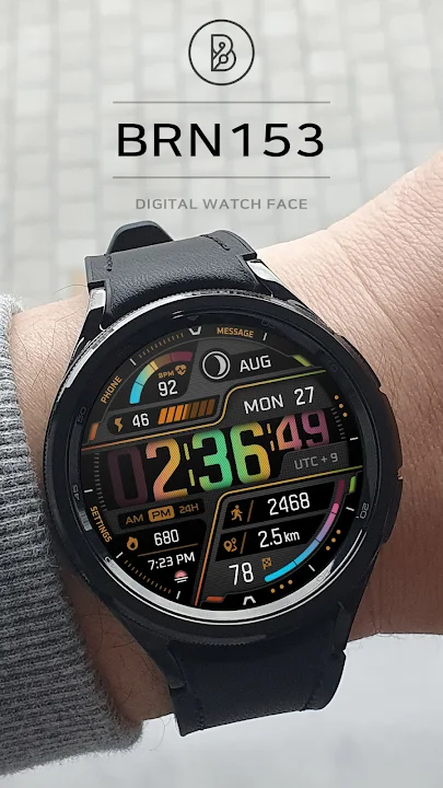 该表盘是 BRUNEN 为 Wear OS 设计的现代数字表盘。