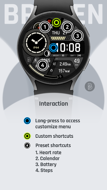 該錶盤是 BRUNEN 為 Wear OS 設計的現代數位錶盤。