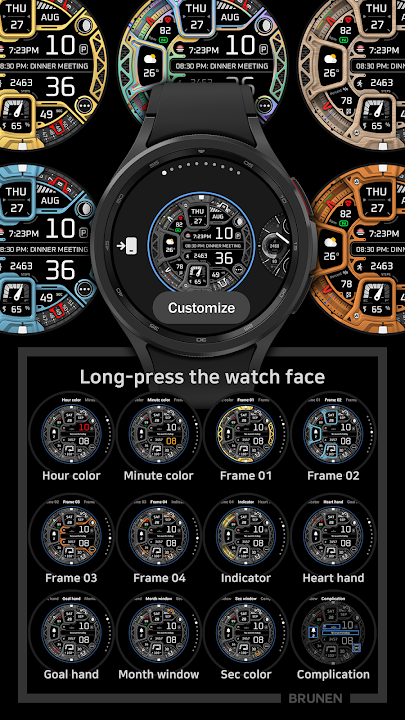 This watch face was designed with Watch Face Studio and the Galaxy Watch 4/5/6/7 was used as a test device.