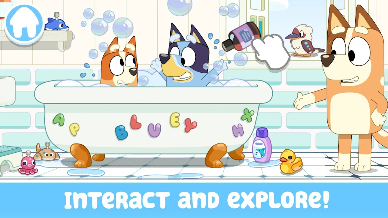 Bluey's house is your virtual playset and the fun is at your fingertips! Tap, drag and interact with everything. Cook up some favorite recipes in the kitchen, help build a pizza oven in the backyard or throw a tea party - there’s no end to what you can create!