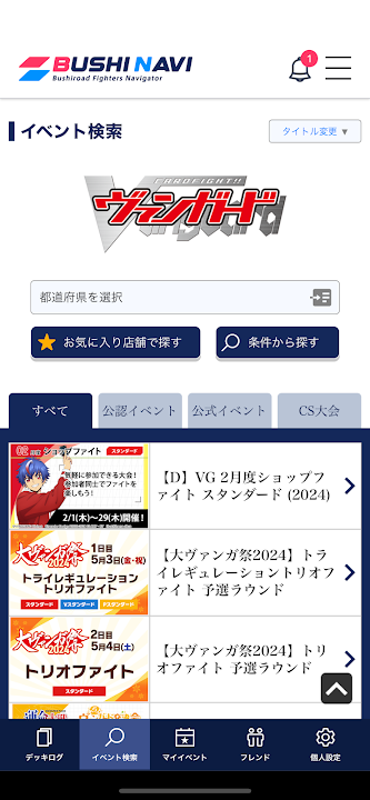 Bushiroad official TCG tool "Bushi Navi" is now available! Find any Bushiroad TCG or any tournament with this app! You can apply! You can participate!