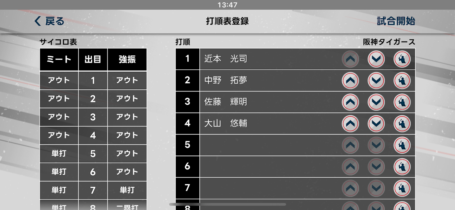 Manage information necessary for the game of "Professional Baseball Card Game Dream Order", such as rolling dice and recording scores!
