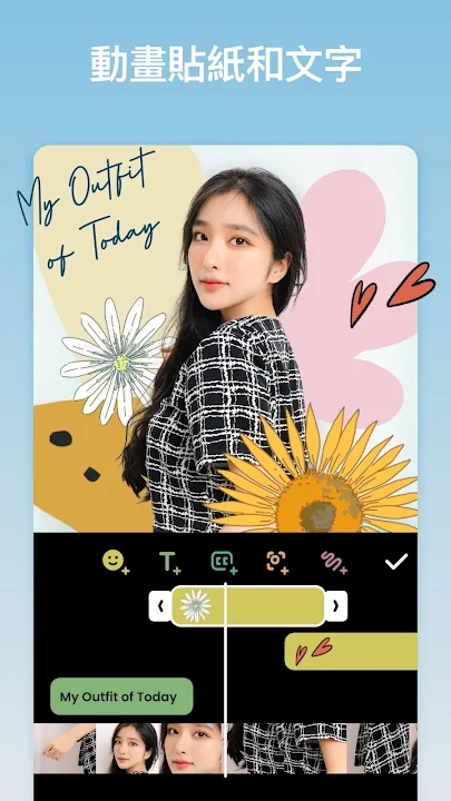 3. 為文本和貼紙添加動態效果和淡入淡出的效果。