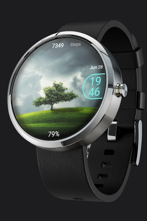 適用於 Wear OS 的具有自然主題的現代錶盤 -(數字 - 自然)