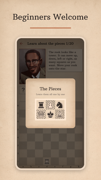 - **个性化指导**:体验沃尔夫博士独特的教学方法,他不仅指导您,还会与您一起下棋,为您讲解每一步棋的精髓。他会在您下棋时为您讲解各个主题,确保您理解每一步棋背后的“原因”。