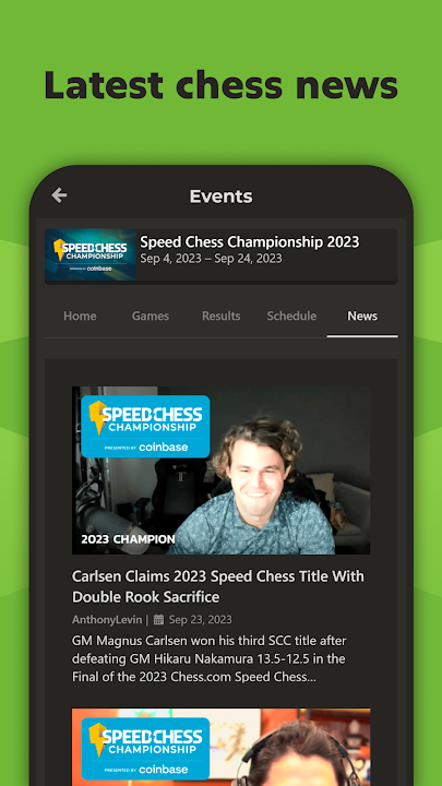 及时了解世界各地的顶级国际象棋锦标赛和活动。 Chess.com 的活动应用程序为关注现场锦标赛和活动提供了一个动态中心,让您始终处于国际象棋竞技领域的最前沿。见证世界顶级大师在世界国际象棋锦标赛、国际象棋冠军巡回赛或任何其他重大国际象棋赛事等著名赛事中展开较量。