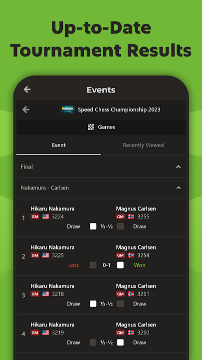 立即下载应用程序,不错过激动人心的国际象棋赛事世界的每一秒!