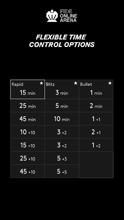Official Ratings: Play bullet, blitz, or rapid chess online with a chess timer and earn an authentic FIDE Online Arena rating.