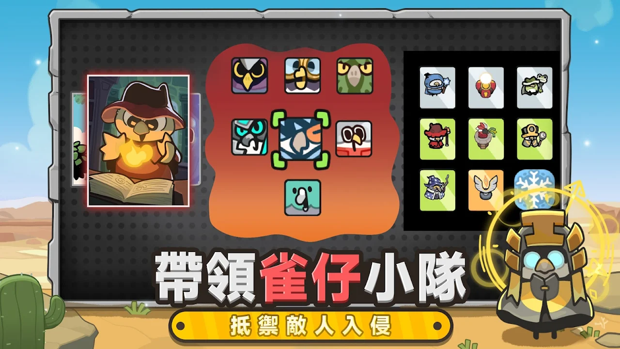 帶領7支雀仔小隊,每隊配備8個獨特防禦單位,激發小隊專屬戰鬥技能,絕不放過任何一個敵人。不同小隊還能搭配作戰應對特殊關卡,讓每一次戰鬥都充滿新鮮感!