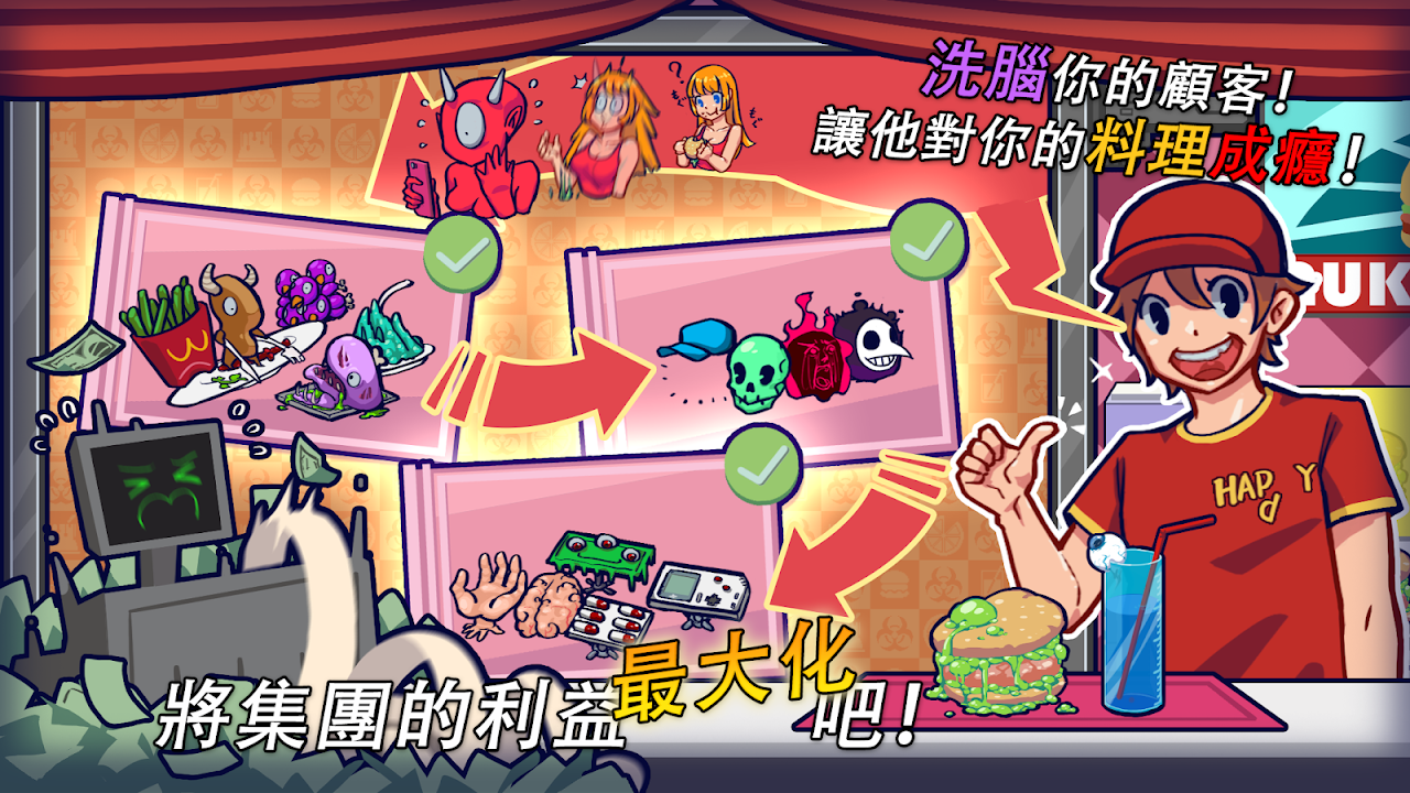 歡迎加入大家餓餐廳!在這裡,你將經營一個屬於自己的餐廳,並且為集團的發展添磚加瓦! 大家餓餐廳集團的殺手級產品,“飢餓素”,是我們不可思議的盈利能力的基礎。它能夠使我們的顧客保持飢餓狀態。有了這個便利的工具,我們就可以把自己從不懈努力提高餐飲水平這日常而又繁雜的勞動中解放出來了!只需要關注不斷增長的利潤就可以啦。