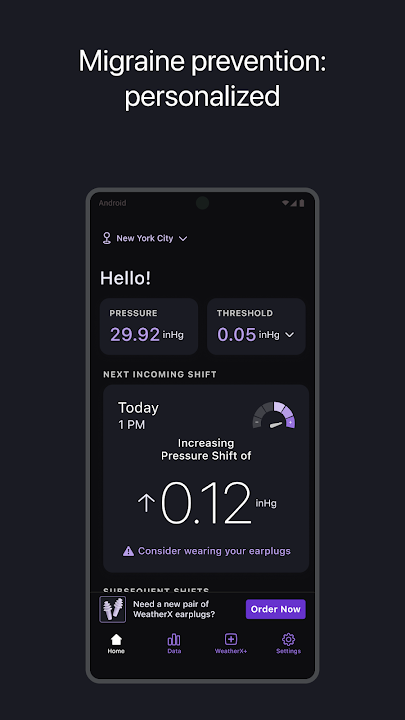 Alerts you to forecasted barometric pressure shifts that may trigger a migraine.