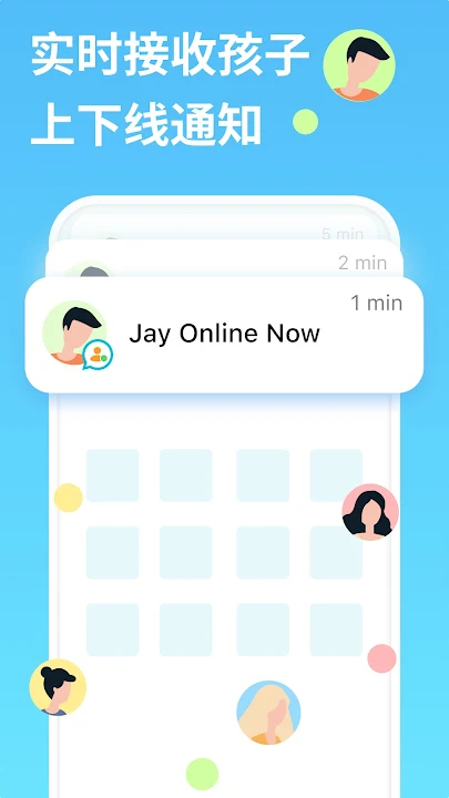• 查看孩子在 Chat App 上的历史登录与离线时间。