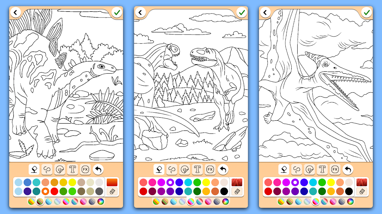 这是一款激发成人和儿童创造力的完美游戏。 如果您喜欢恐龙并喜欢着色,那么这款游戏非常棒。