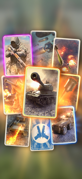 众多军事装备任你使用:冲锋队、火炮、碉堡、狙击手、机枪手、枪支、坦克、炸弹。赢取奖牌,攀登排行榜!打开宝箱,解锁新的强大单位和法术!你能获得一张传奇卡牌吗?