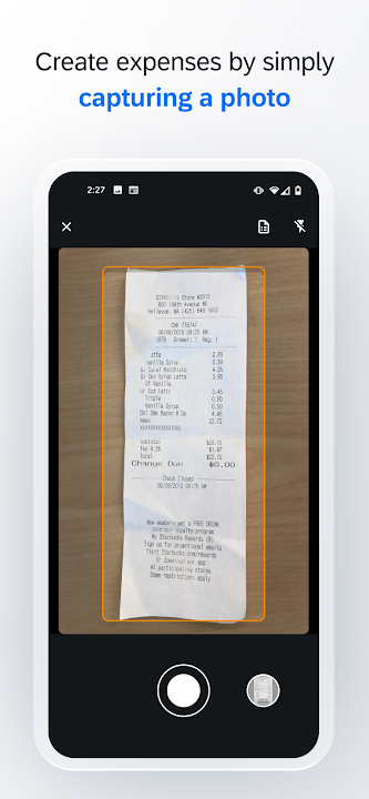 • 為您的收據拍照並立即將其添加到您的費用報告中