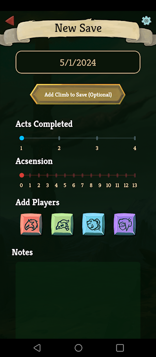 A form to save the progress of your runs, so you can stop a run and restart it later. Multiple save slots are available, so you can save several games at once!