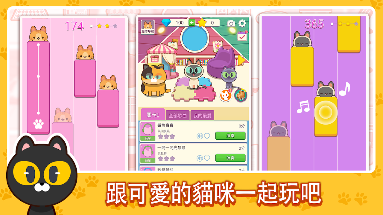 輕按貓鋼琴瓷磚來彈鋼琴並製作優美的音樂。收集星星可以讓您設計和裝飾您的房屋。彈好魔法鋼琴,開始收集很多可愛的小貓咪!