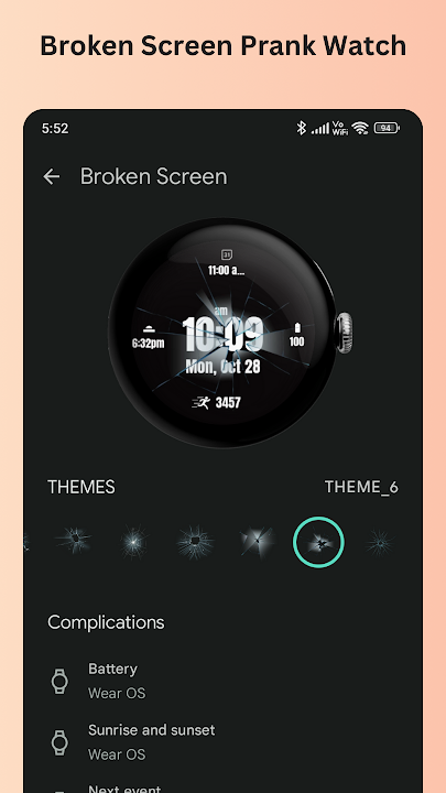 Designed for those who love a good laugh, the Broken Screen Prank Watch Face offers a playful way to customize your smartwatch while still keeping essential features accessible.