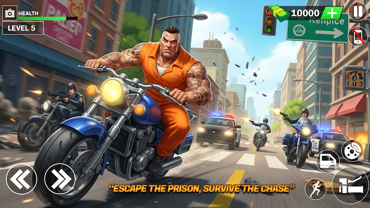 The grand survival gangster's plan is to rob the money and tease them because money is the basic need of every person. Gangsters of crime city create a mess in a criminal jail break escape game they started fighting with a prison escape jail break player during a fight in a criminal shooting game police arrive to save the innocent people and send gangsters behind the bars. But the policemen found a jailbreak main player beating gangsters. They tried to catch them and take the prison escape jail break hero to the police station in this prisoner escape jailbreak free shooting jail escape game.