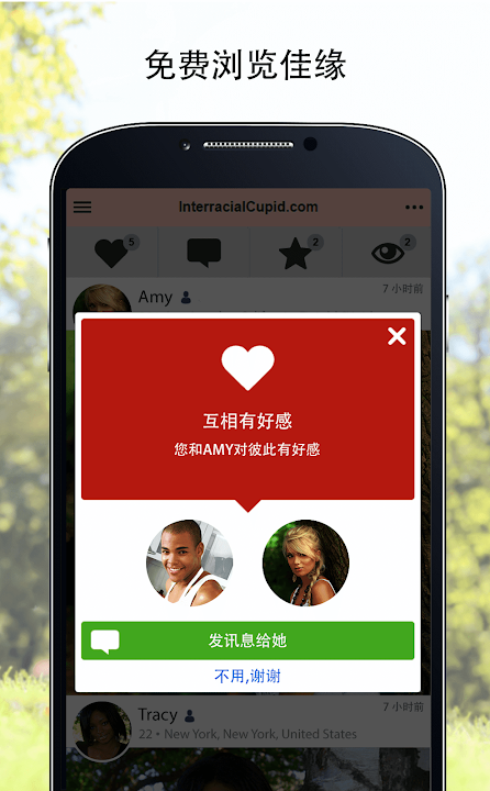 InterracialCupid是信誉卓著的Cupid Media网络的一部分,该网络运营了30多个知名的小众交友网站和应用程序。无论您想要寻找白人女性的黑人男性,还是想要寻找黑人女性的白人男性,您都可以通过该应用程序建立您想要的跨种族关系。我们致力于让世界各地的单身人士建立联系,为您带来一款专为跨种族交友打造的白人和黑人交友软件。